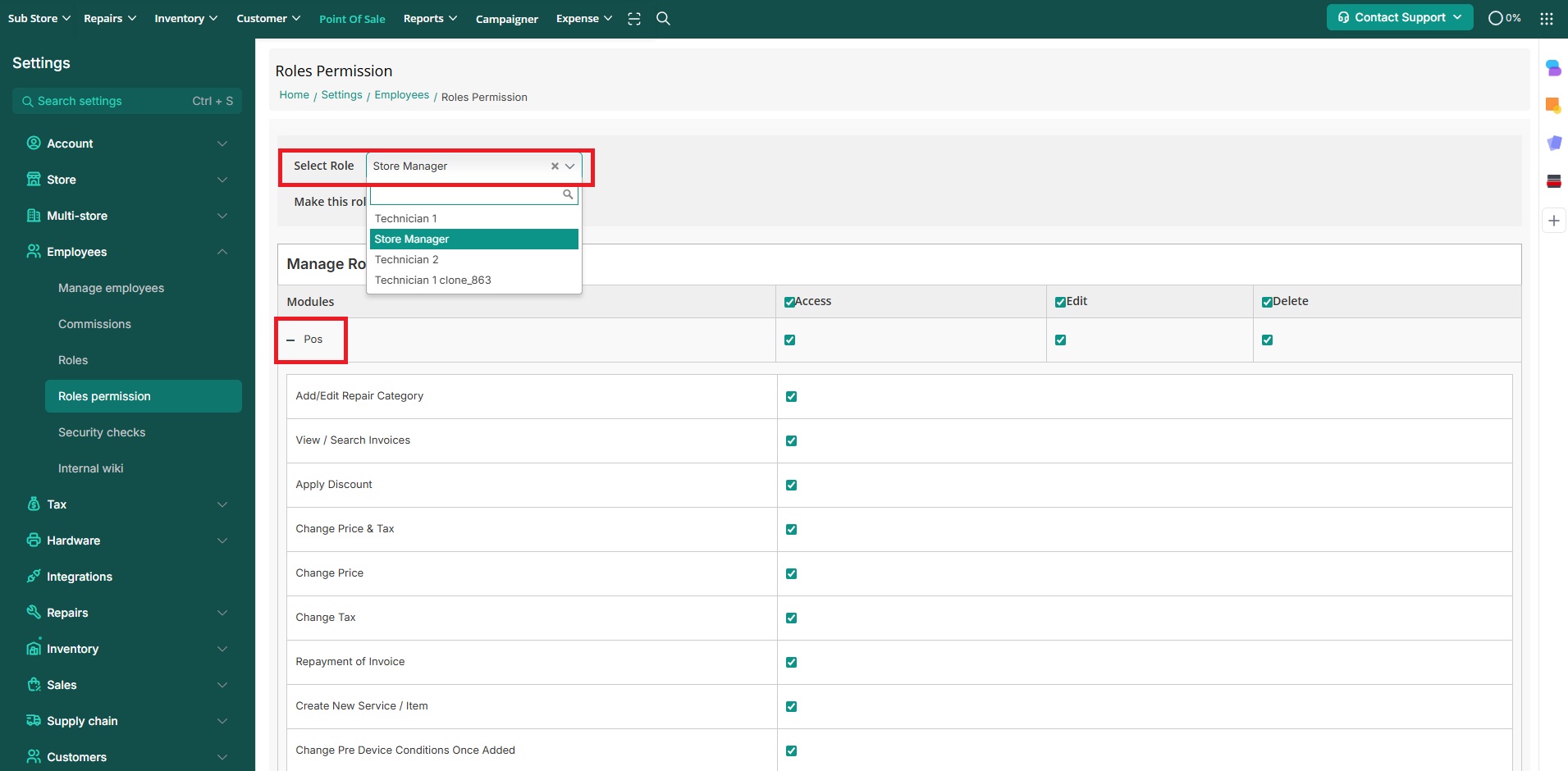 Here, you can enable or disable the Allow to open cash drawer manually option for that specific role.