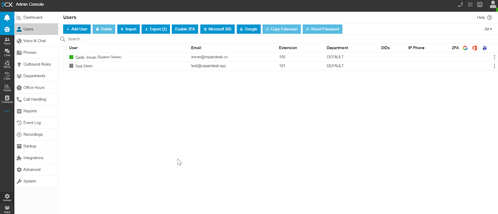 Once the extensions are created from the 3CX Portal then their status will be shown as active and the extension will be assigned to that specific representative/user