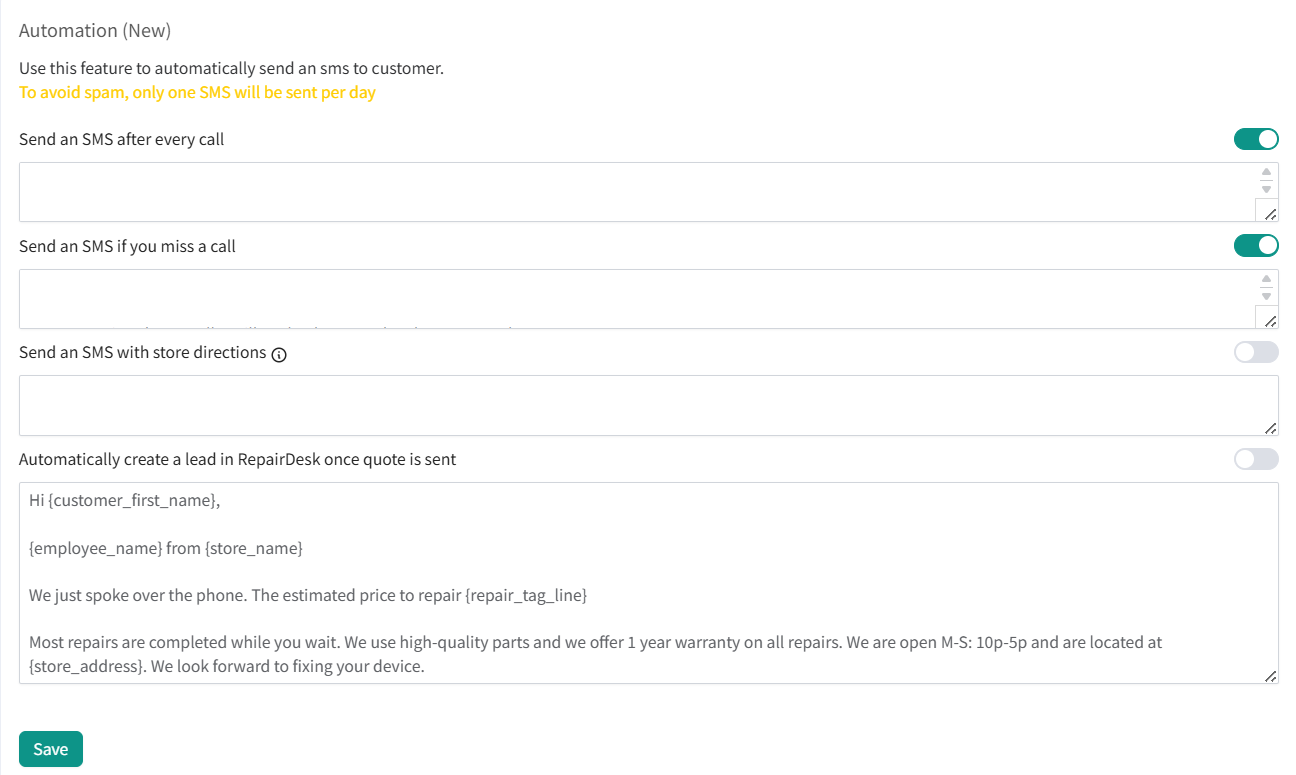 23. Write SMS Content in the section for every call you missed or every call you receive.