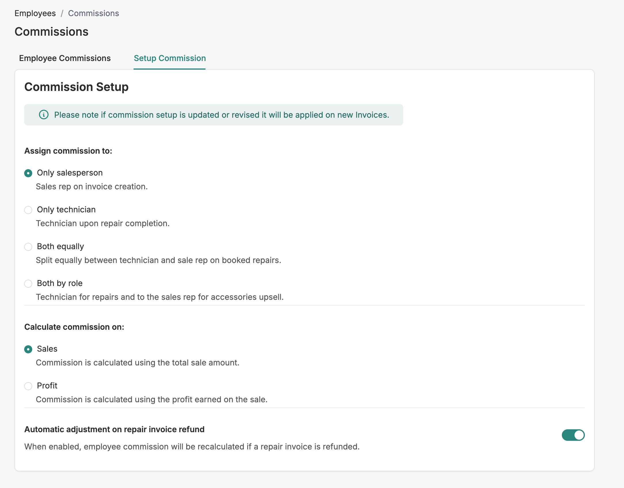 Employee-based commission: