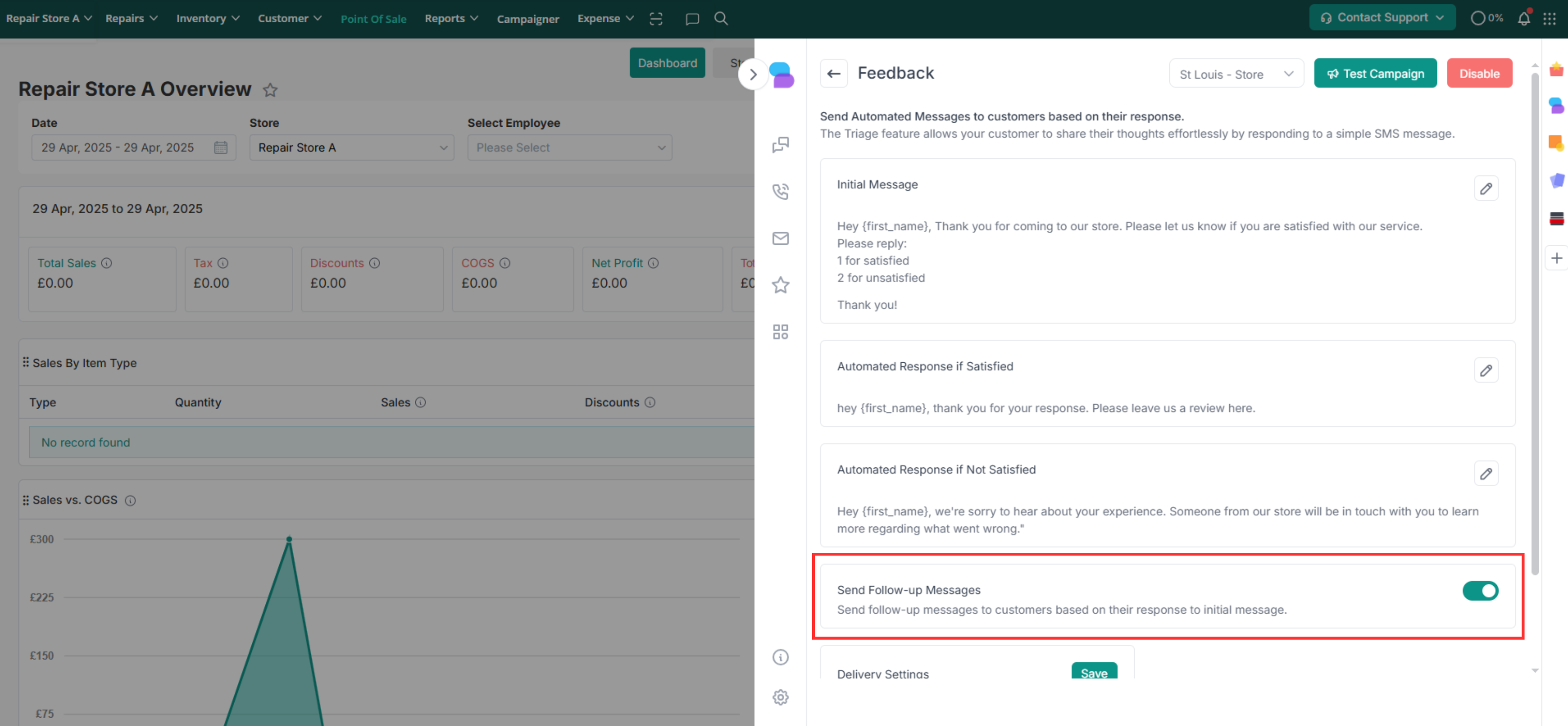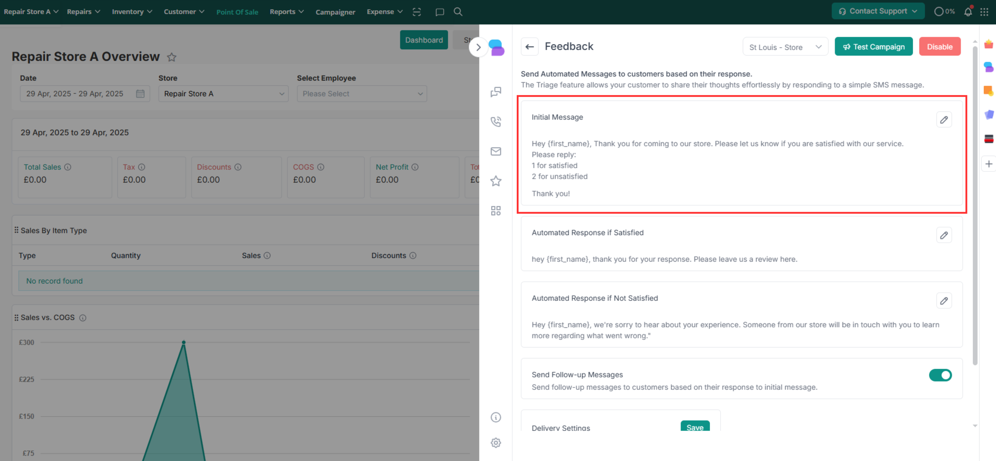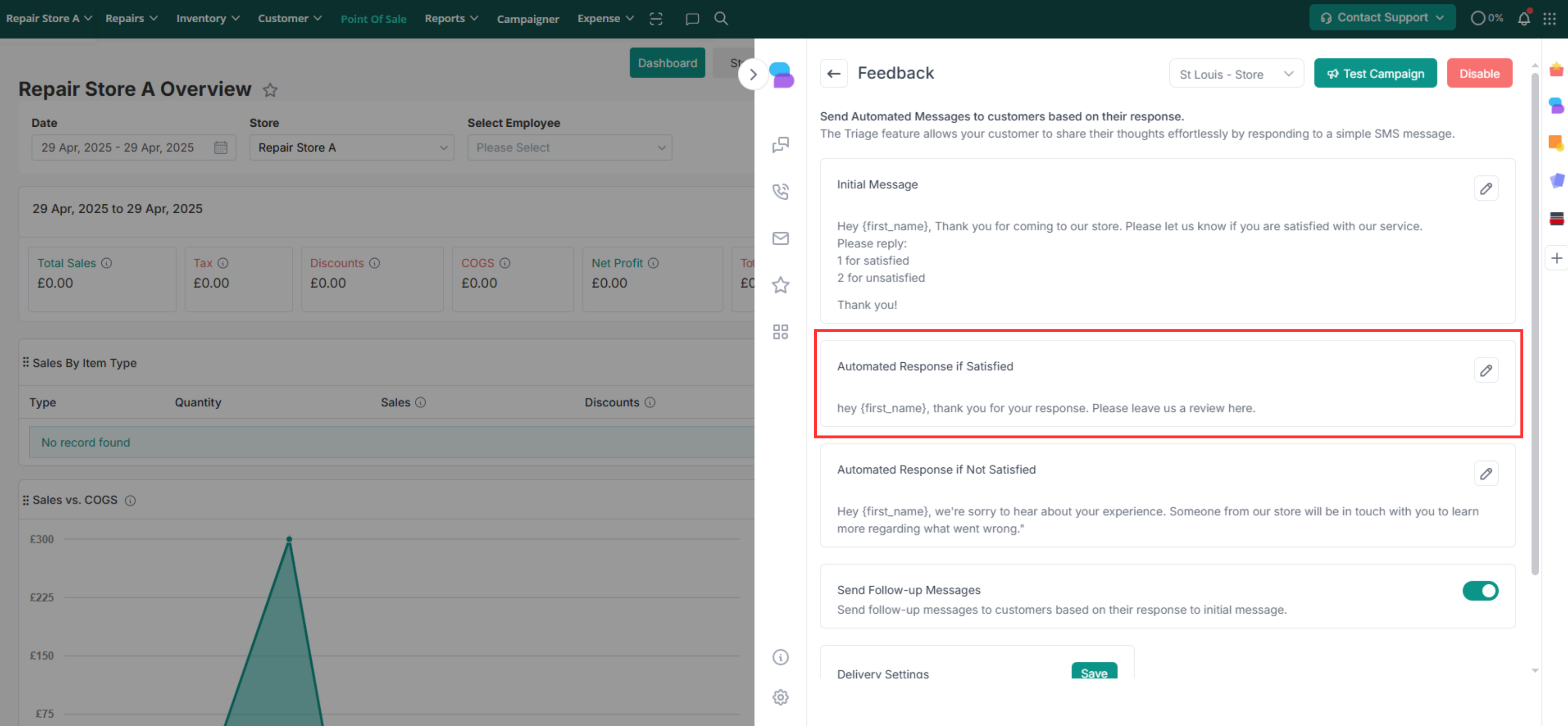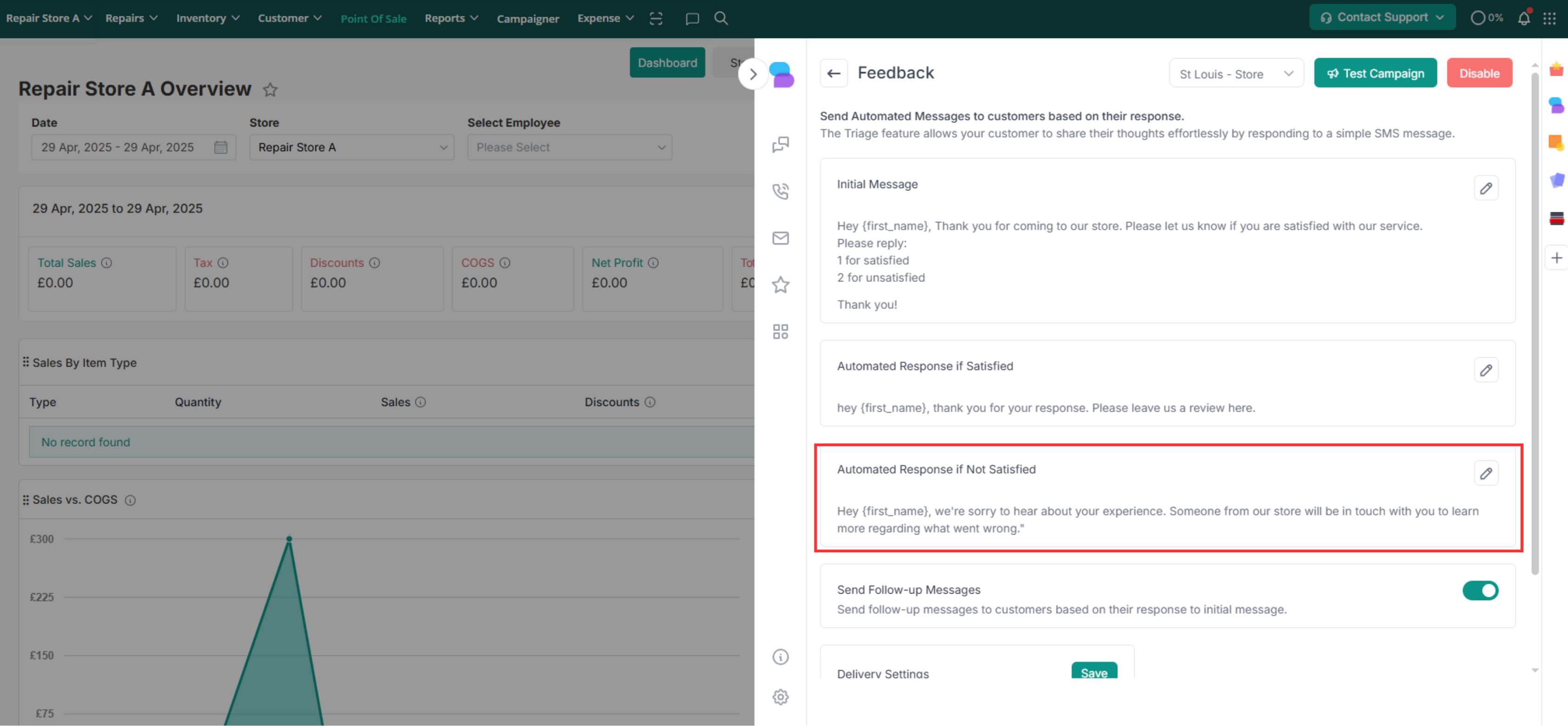 The feedback module allows you to gather valuable insights directly from customers following the repair and collection of their devices. Through automated messages sent via repairdesk Connect, customers are prompted to share their satisfaction level, allowing you to address any concerns promptly and provide personalized follow-up if needed.