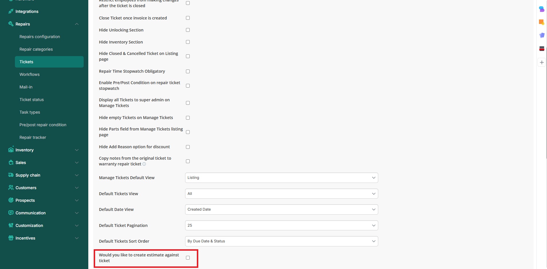 A. Yes you can disable this option by Store Settings > Repairs > Tickets