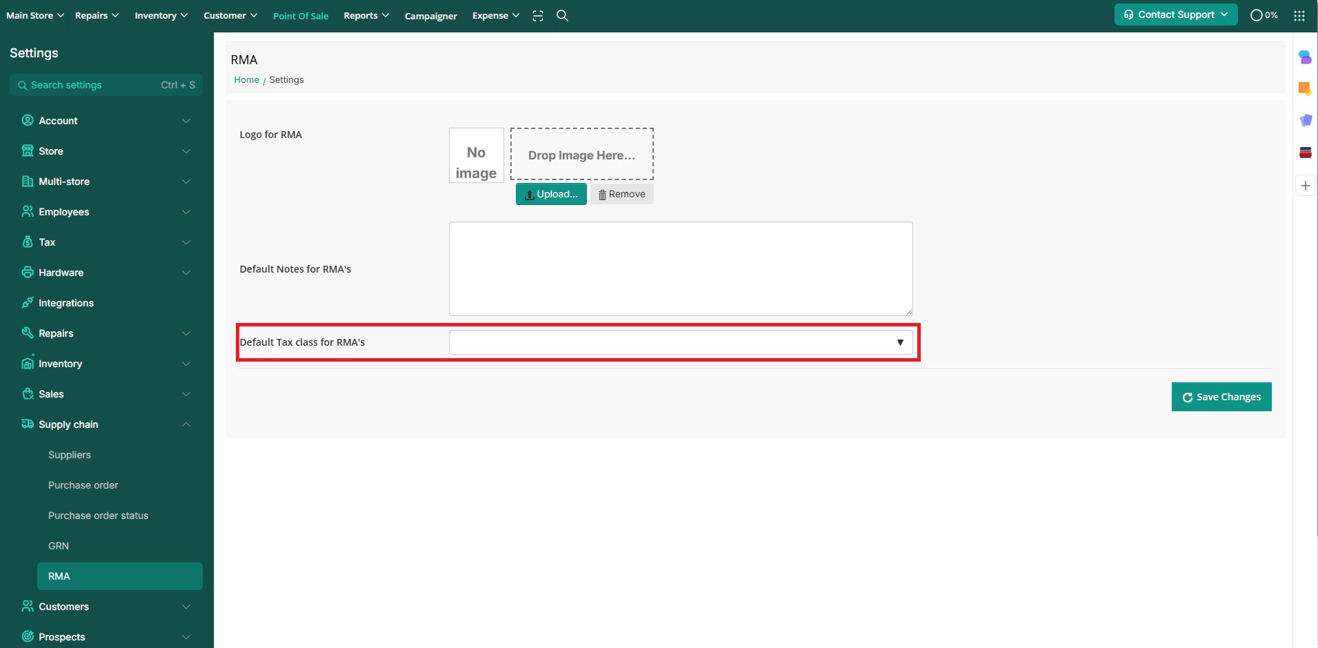 Store Settings > Supply Chain > RMA