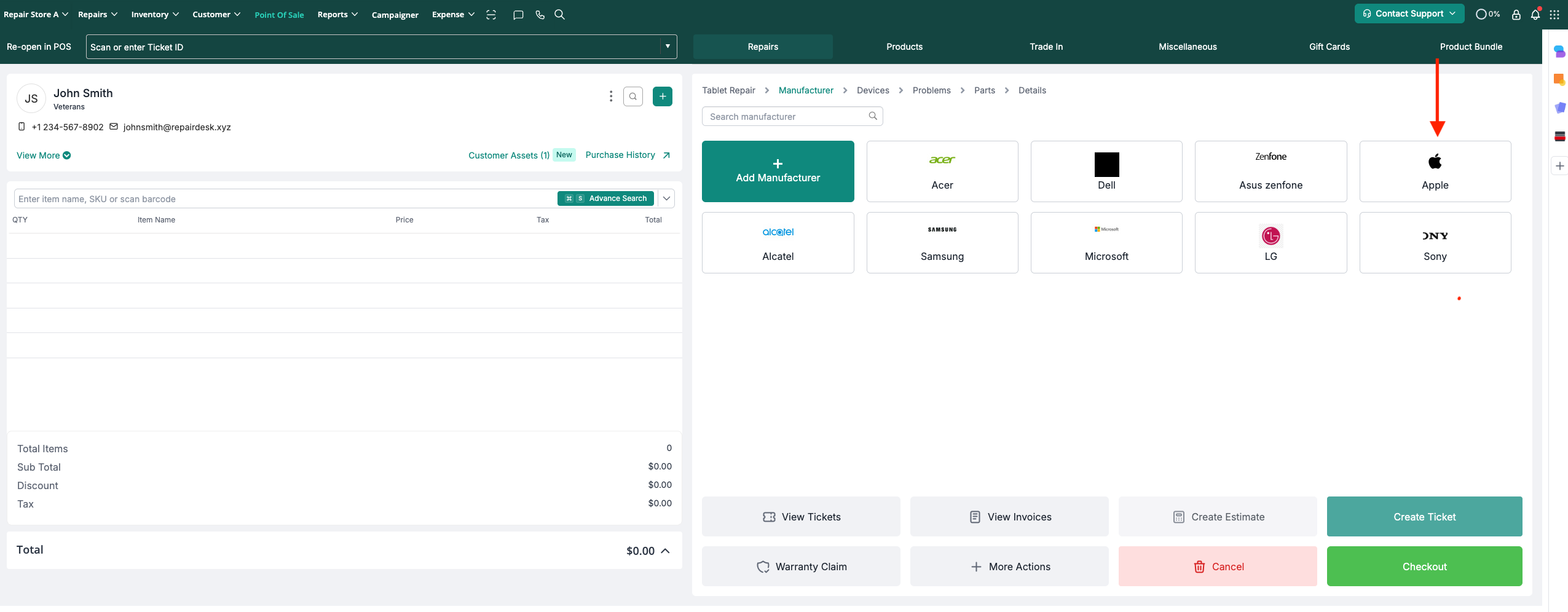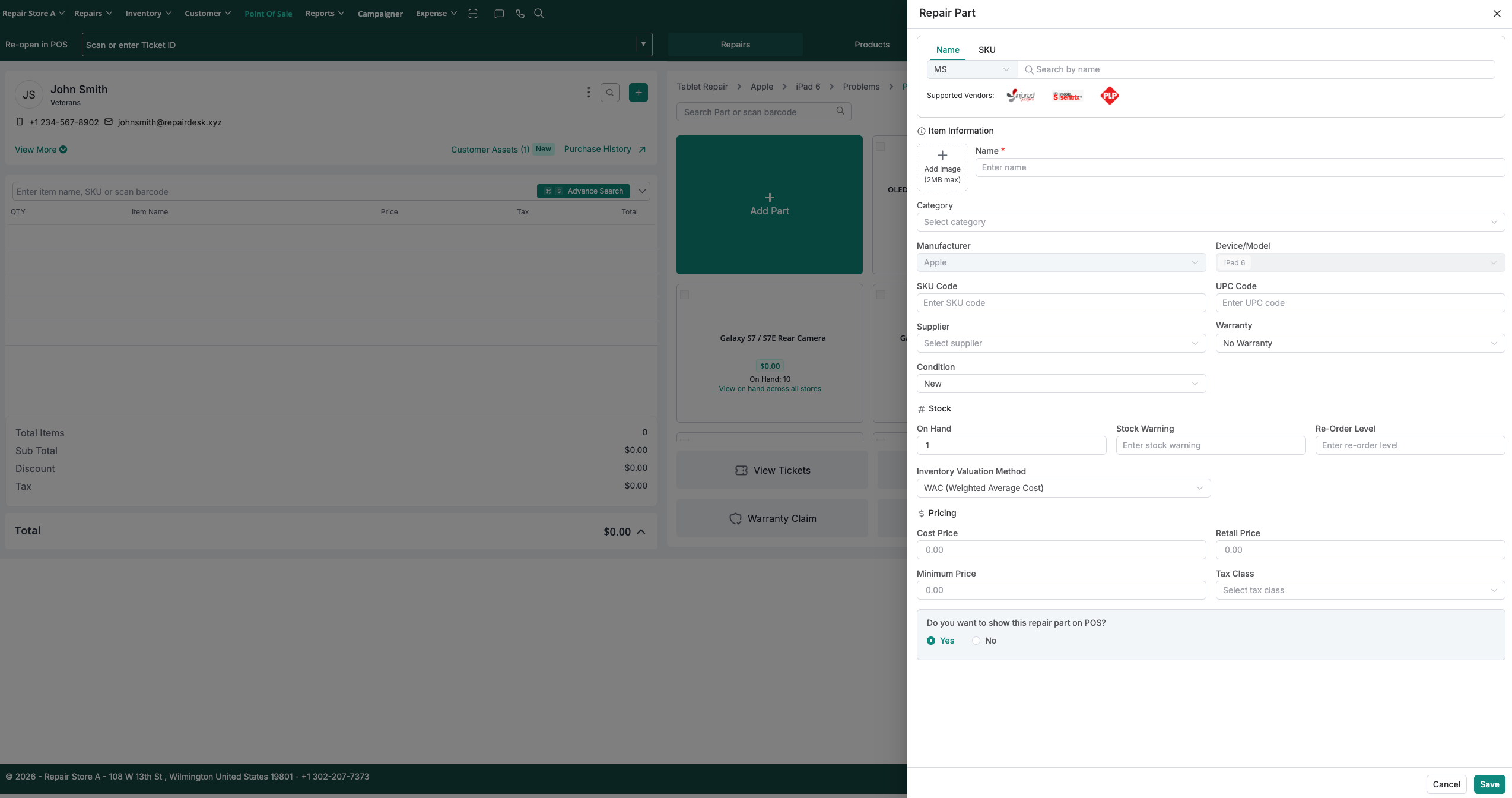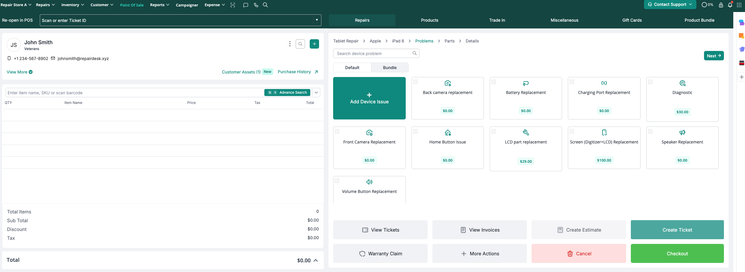 The Point of Sale (POS) feature in RepairDesk allows you to easily book repair jobs, sell items, and handle trade-ins or casual purchases from one convenient screen. This documentation will guide you through the various functions and options available in the POS feature.
