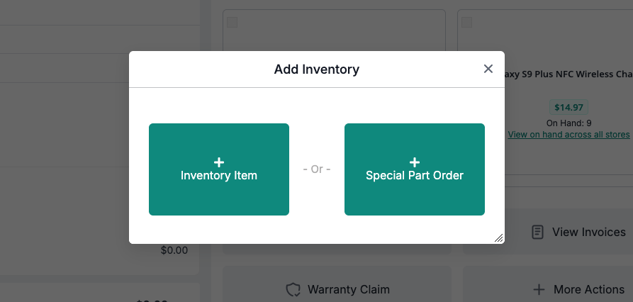 If it's in your inventory then click on inventory item, otherwise click "SPECIAL PART ORDER" to purchase from outside.