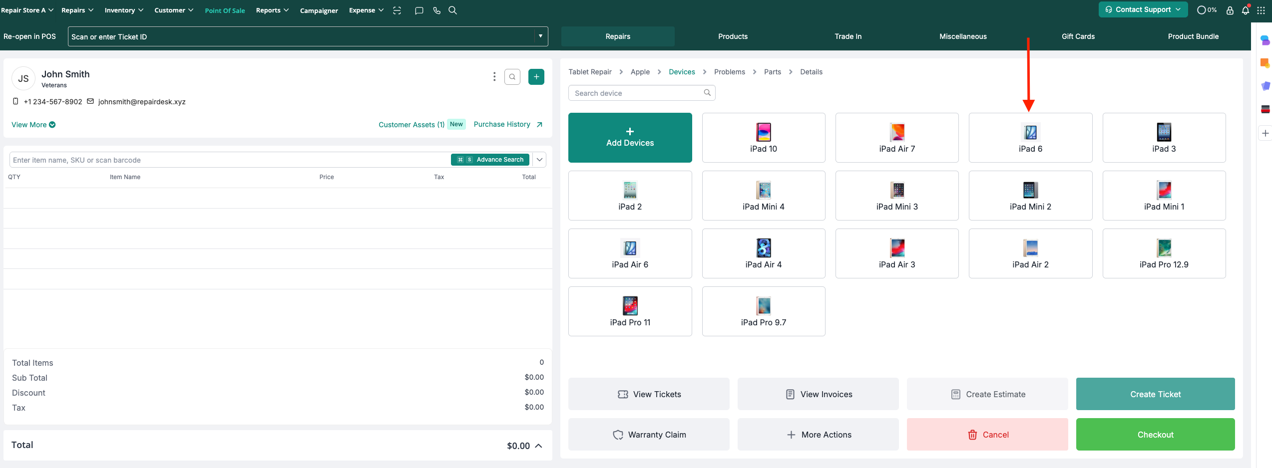 Let's take an example, you want to repair a tablet. Click on the "Tablet Repair" button to add a device.