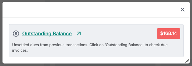 If there is an outstanding balance or flagged notes, it will display an alert popup. If user clicks on the 'Outstanding Balance', the system will redirect the user to the invoice listing page.