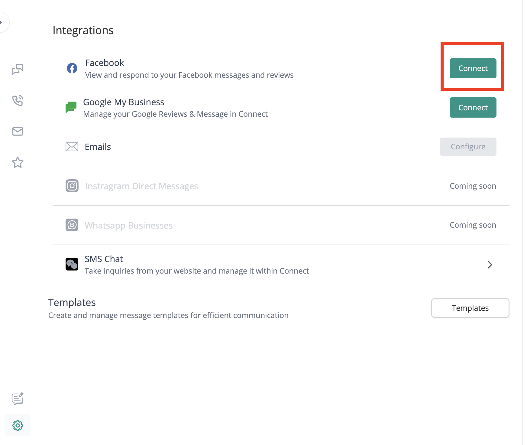 2. Click on "Connect" for Facebook Integration: In the settings section, locate the "Connect" option associated with Facebook Integration. Click on this option to initiate the linking process.
