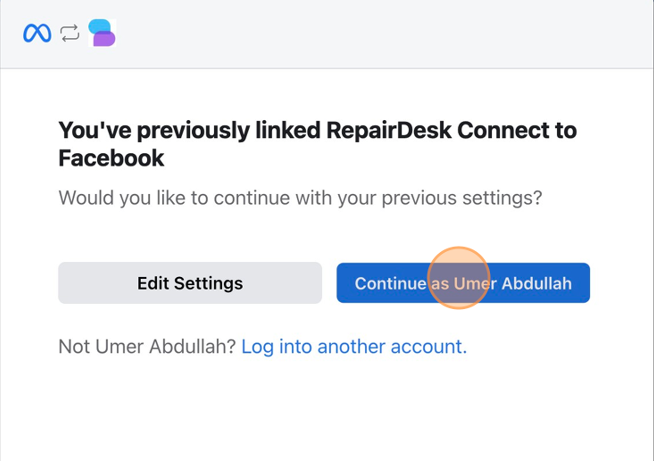 3. Facebook Authentication: After clicking "Connect," you will be redirected to your Facebook profile. This step is necessary to grant RepairDesk Connect permission to access your Facebook pages and manage messages.