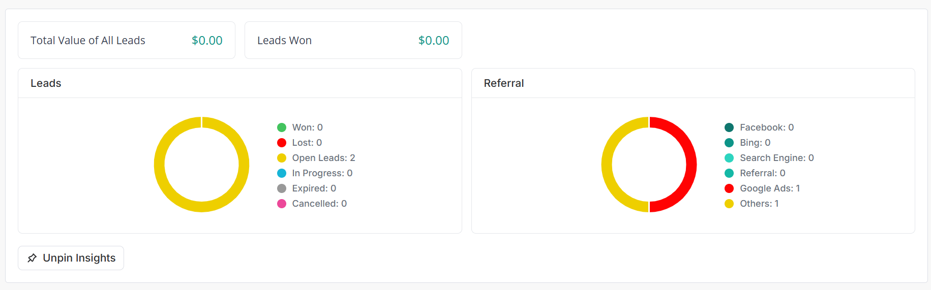 - Referral Source: This filter allows you to see only those leads which came via a particular referral channel, such as "Google Ads" or "Word-of-mouth."