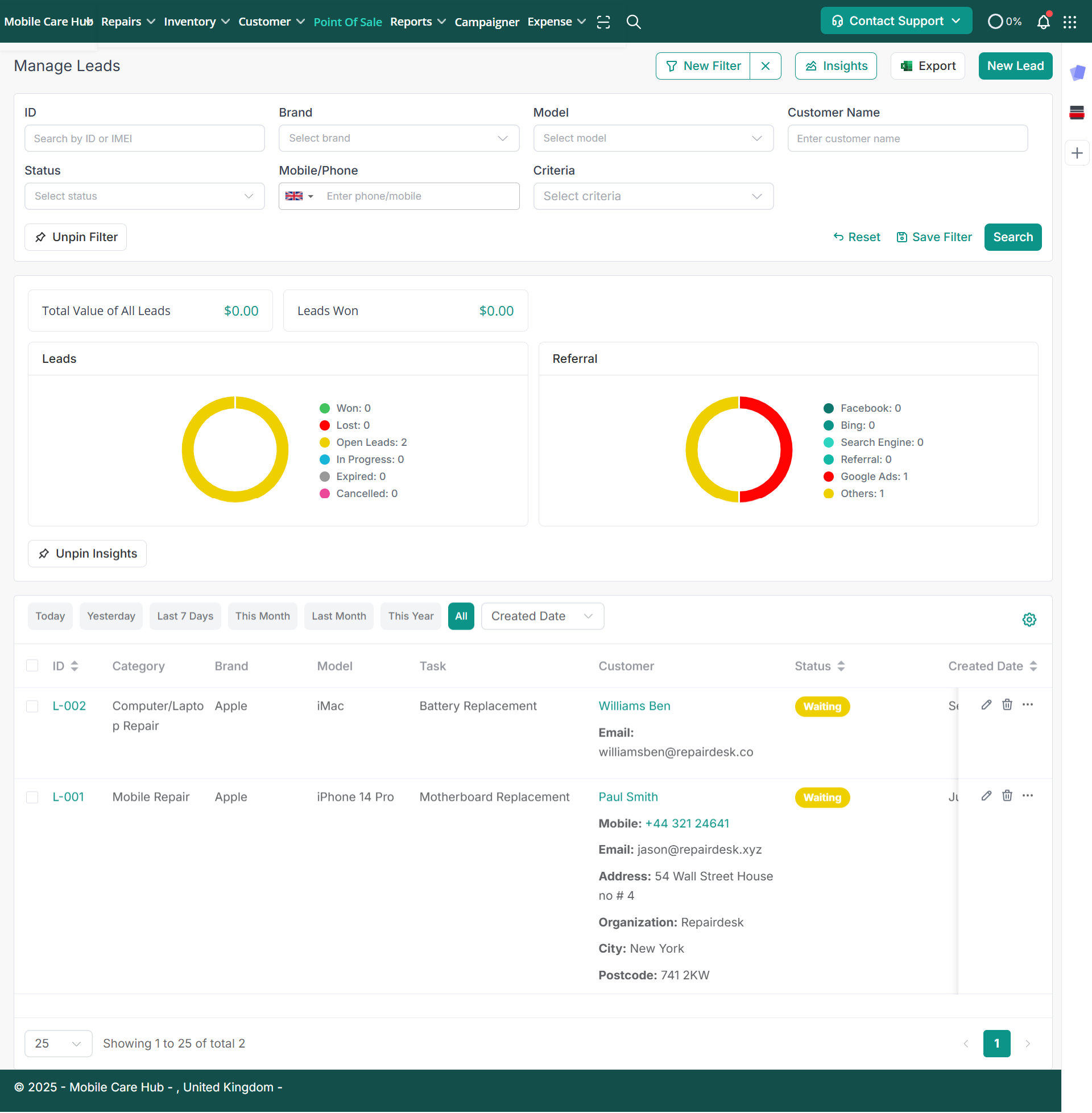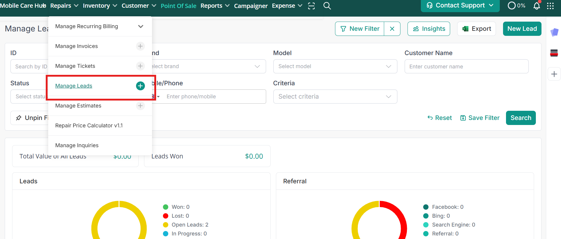 RepairDesk understands the importance of managing leads effectively and has developed a dedicated module for lead management within the app. Here's how RepairDesk helps you manage and create leads:
