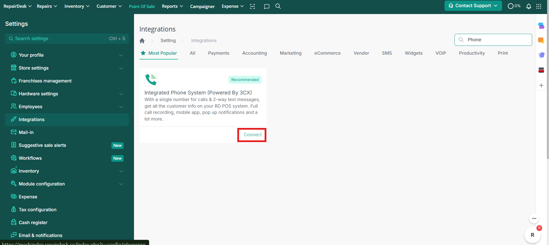 Go to 9 dots > Integrations > Integrated Phone System (Powered By 3CX)