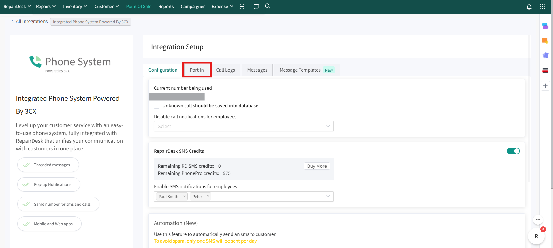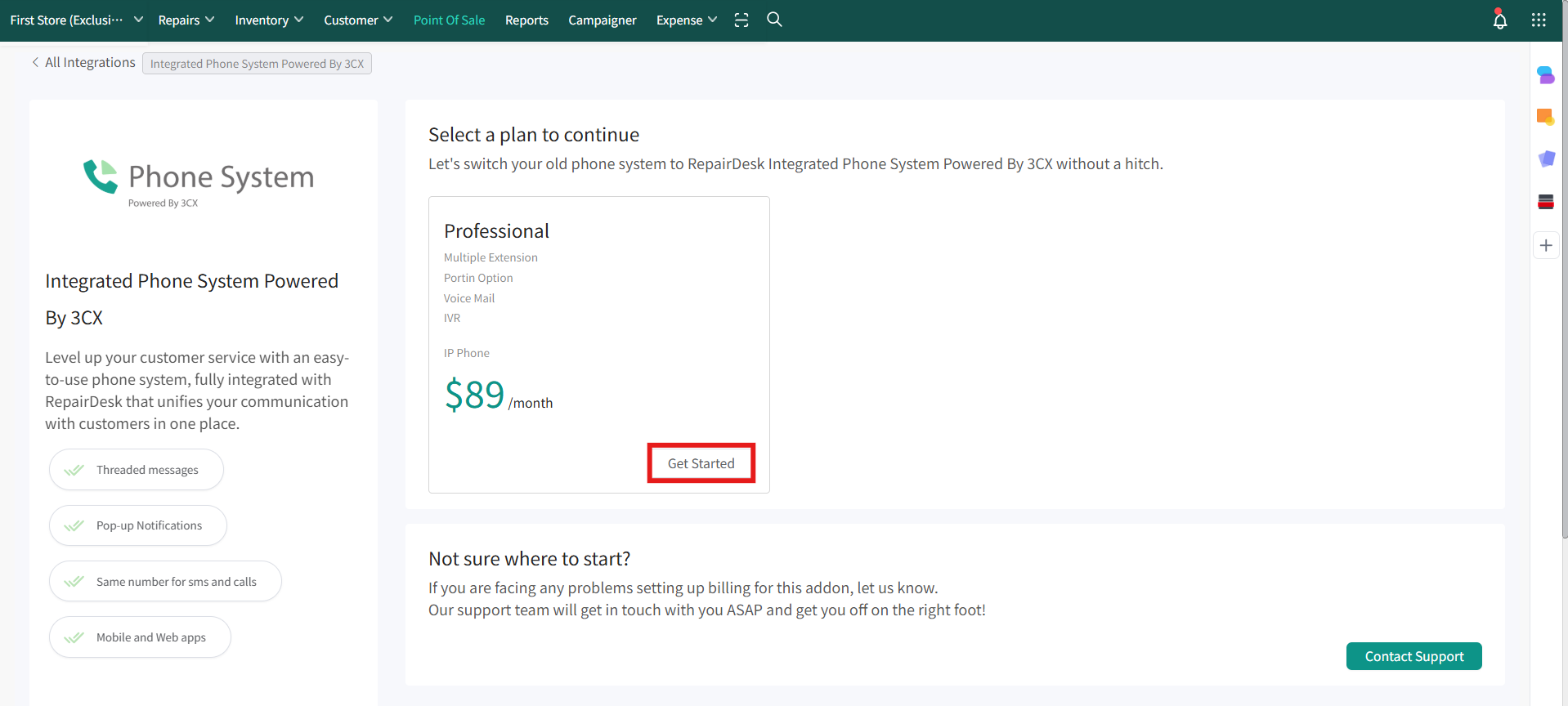 After purchasing, you will land on the configuration page of Integrated Phone System – Powered by 3CX.