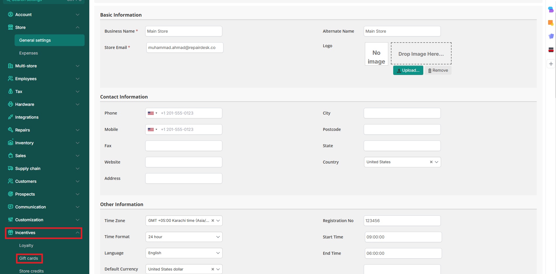 RepairDesk allows you to reload a gift card or share its balance with customers upon their inquiry: