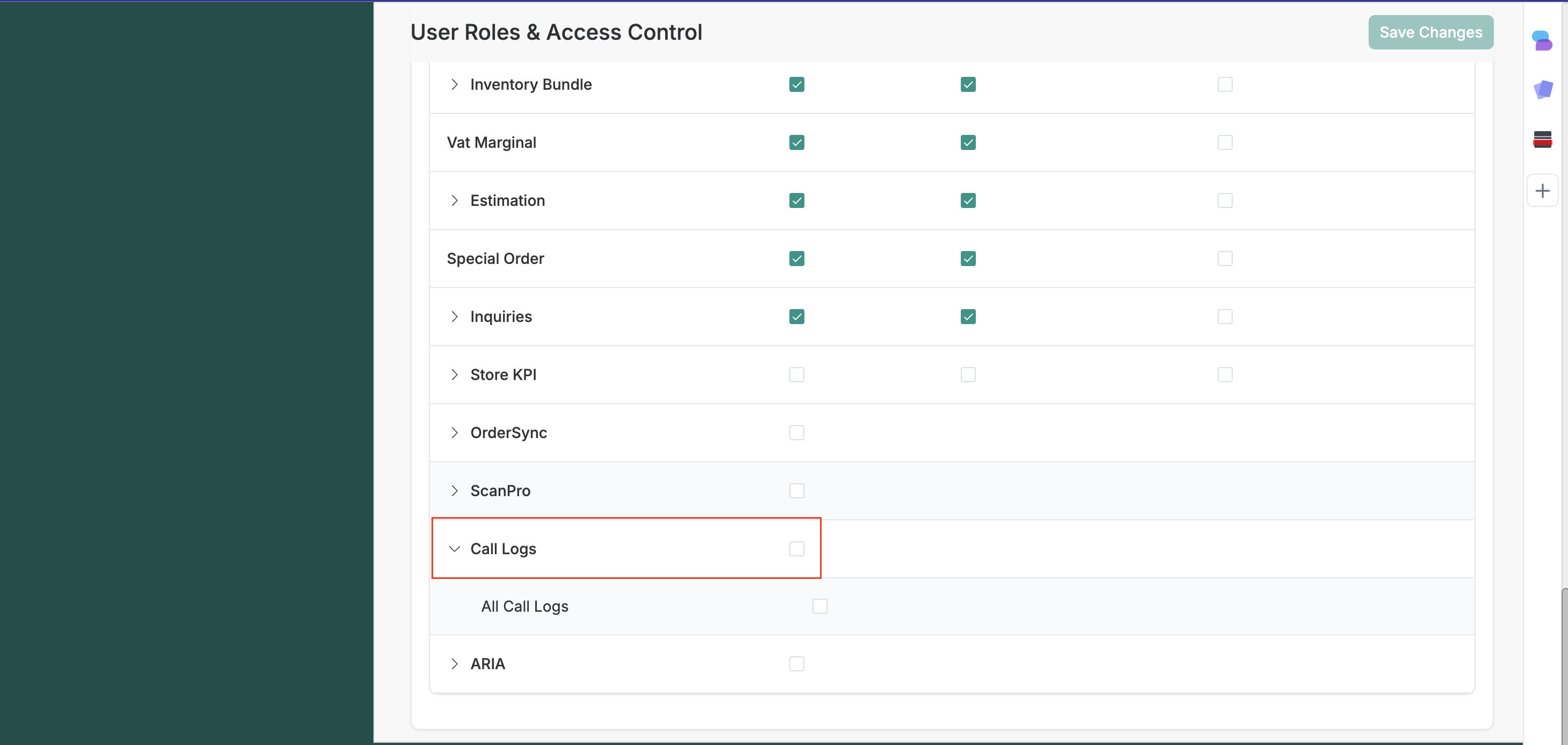To grant access to your employees, go to Store Settings > Employees > User Roles & Access Control > Permissions, and choose the role you want to assign permissions to. In the Permissions section, you’ll find an option for “Call Logs”, where you can enable access to call logs for that specific employee role.