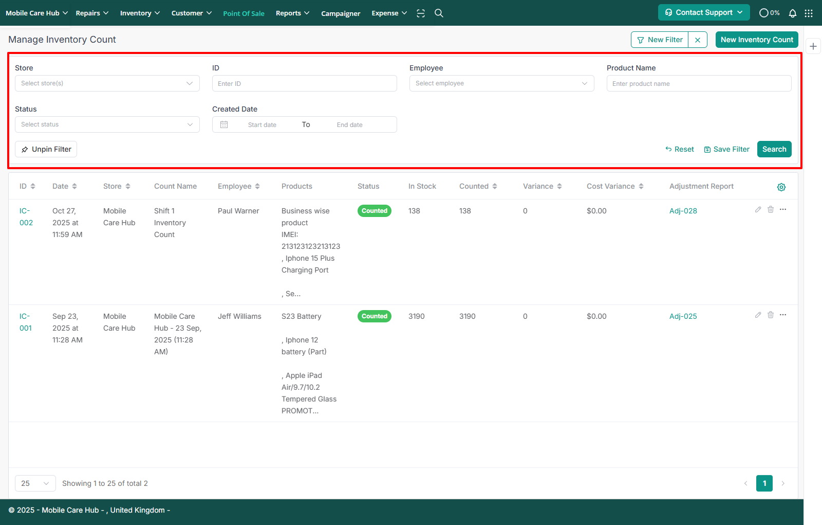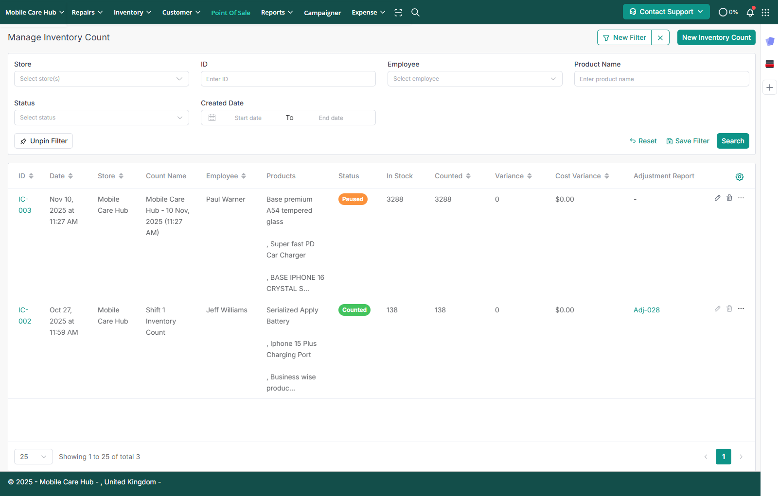As a repair store owner, keeping your inventory accurate is crucial, but manually tracking stock levels can be time-consuming and prone to errors. Ensure precise stock management by performing regular inventory counts using RepairDesk’s Inventory Count feature. Update stock levels, prevent shortages, and spot discrepancies effortlessly—all from a centralized system.