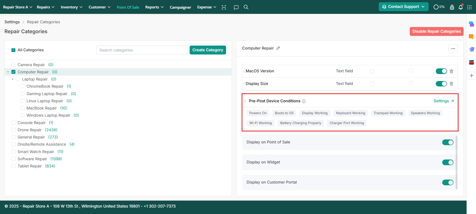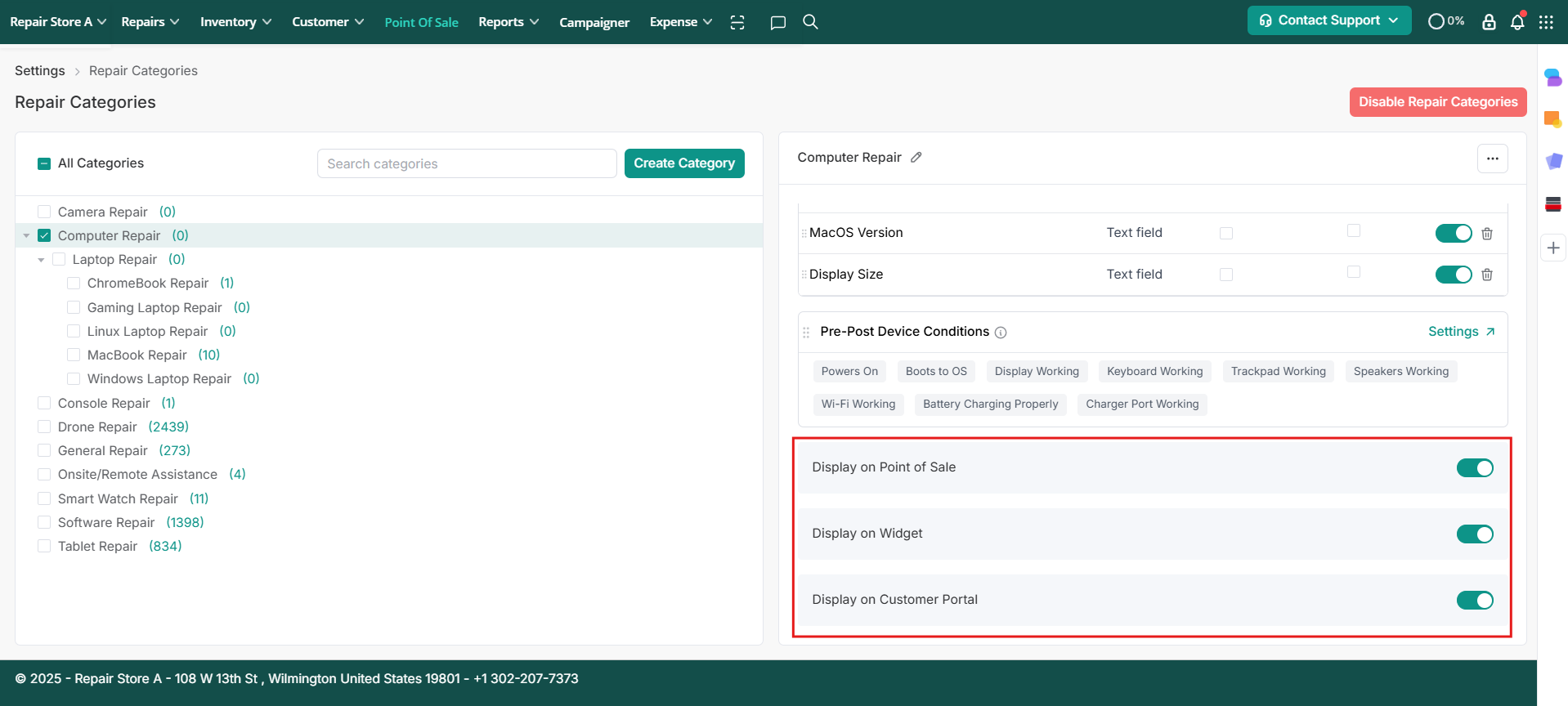 Choose to make the repair category visible on POS, Widgets or the Customer Portal.