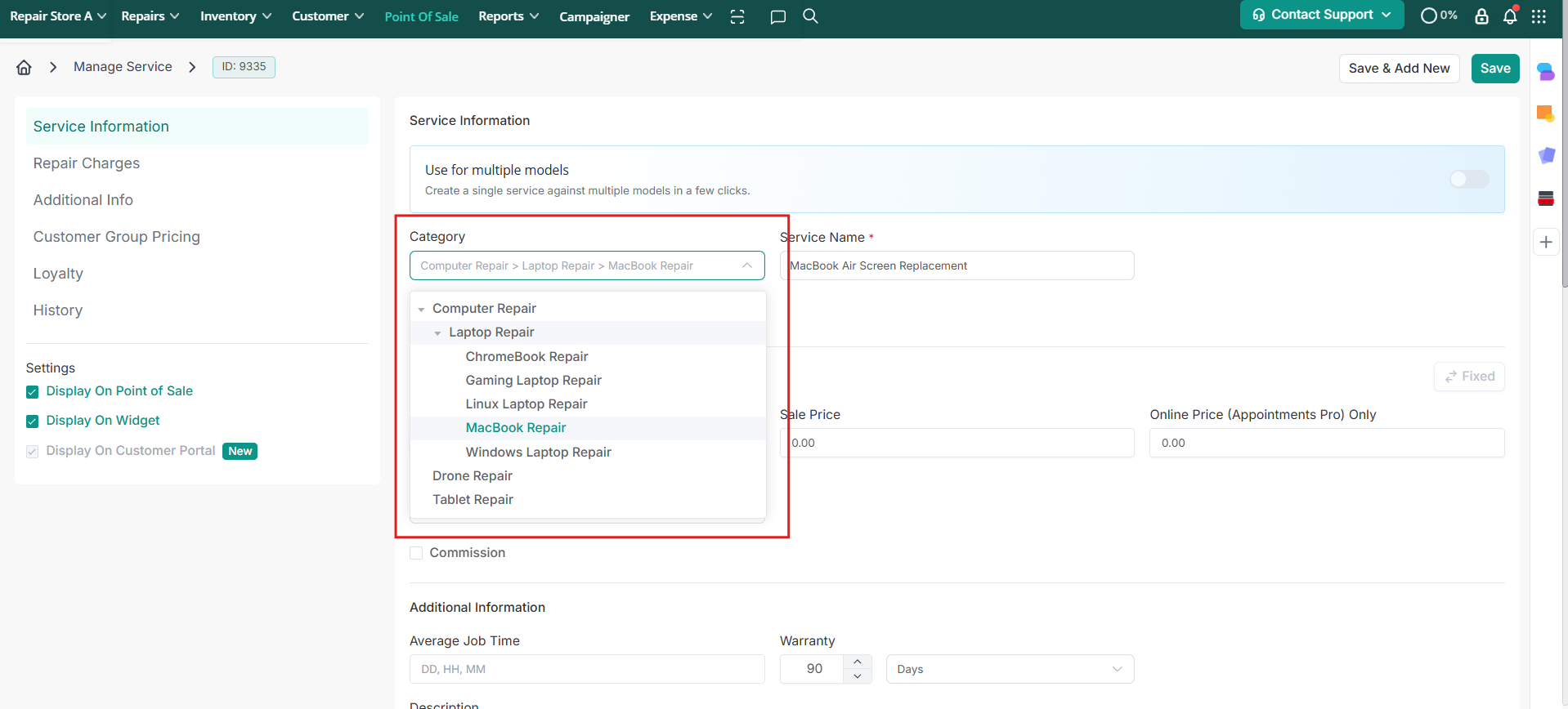 Apply your Repair Category Tree directly to services and keep your repair catalog structured, searchable, and perfectly aligned with your workflow.