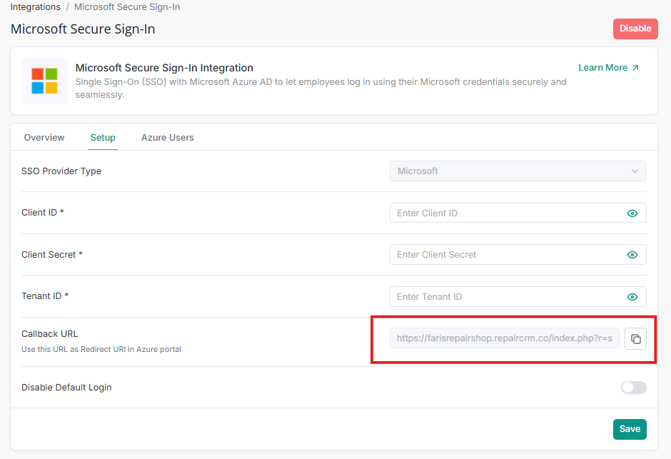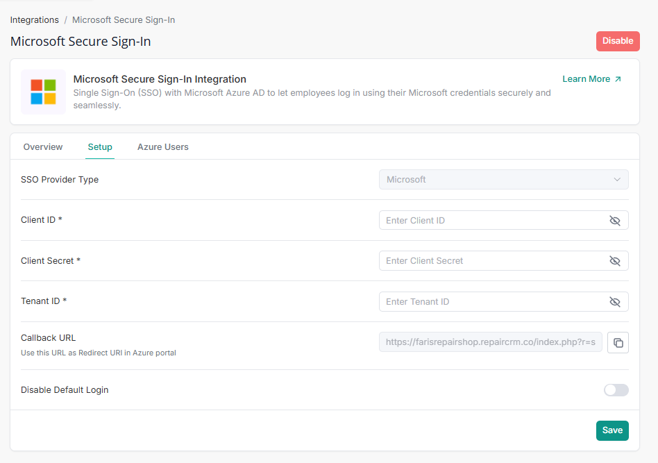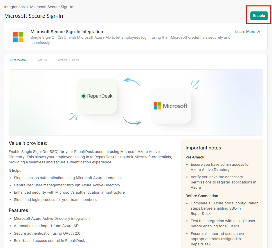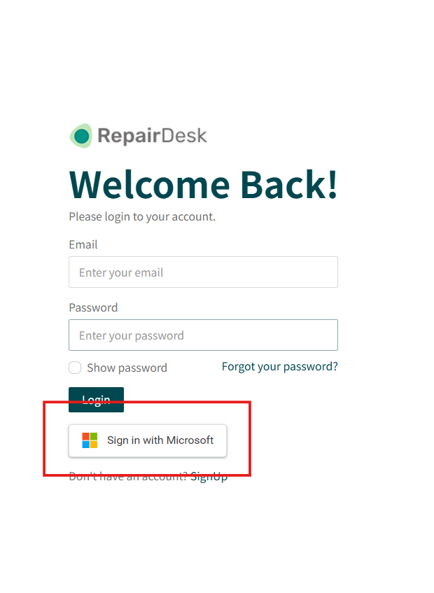 RepairDesk supports Microsoft Single Sign-On (SSO) using Azure Active Directory (Azure AD).