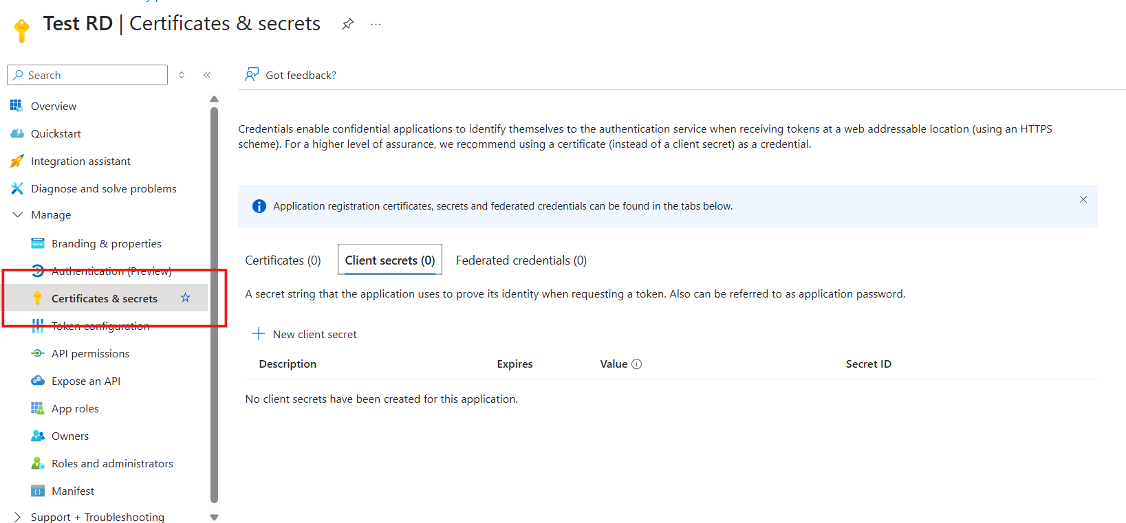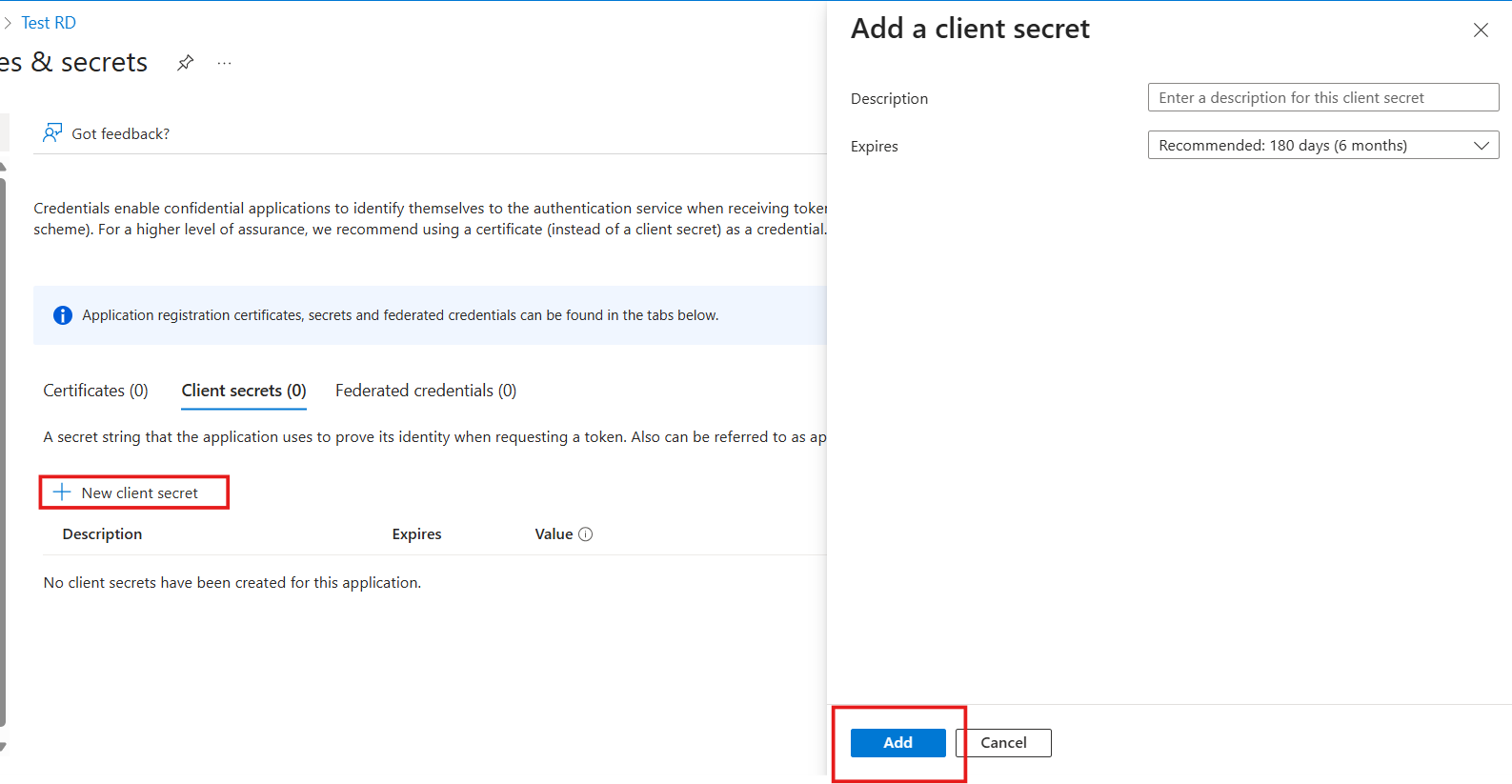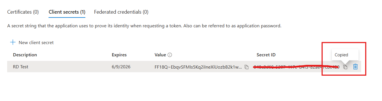 Note: Copy the Client Secret Value immediately — you will not be able to see it again.