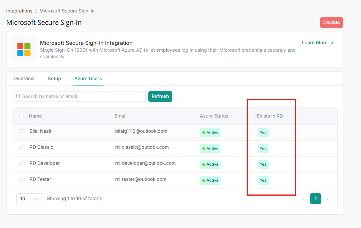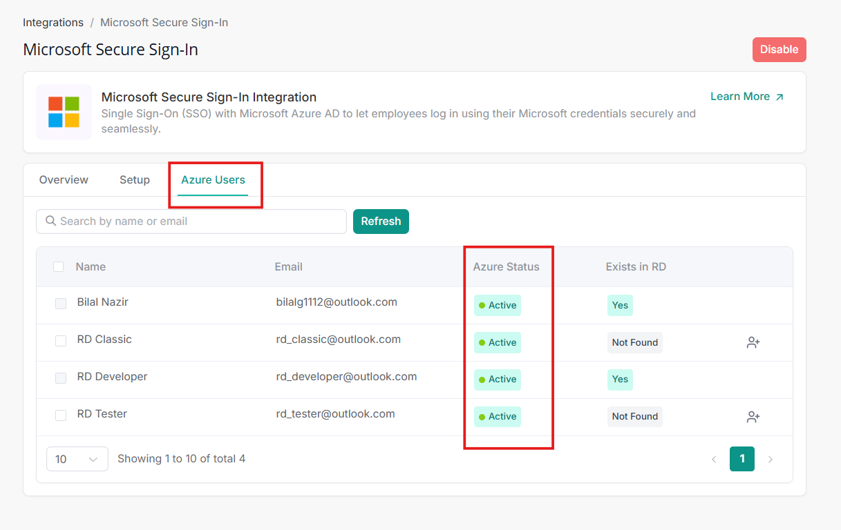 Navigate to Azure Users tab, you'll see a list of azure users here with their Azure Status