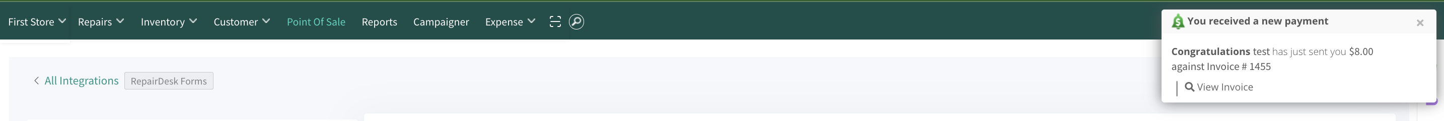 Your RepairDesk POS will prompt a notification of received payment.