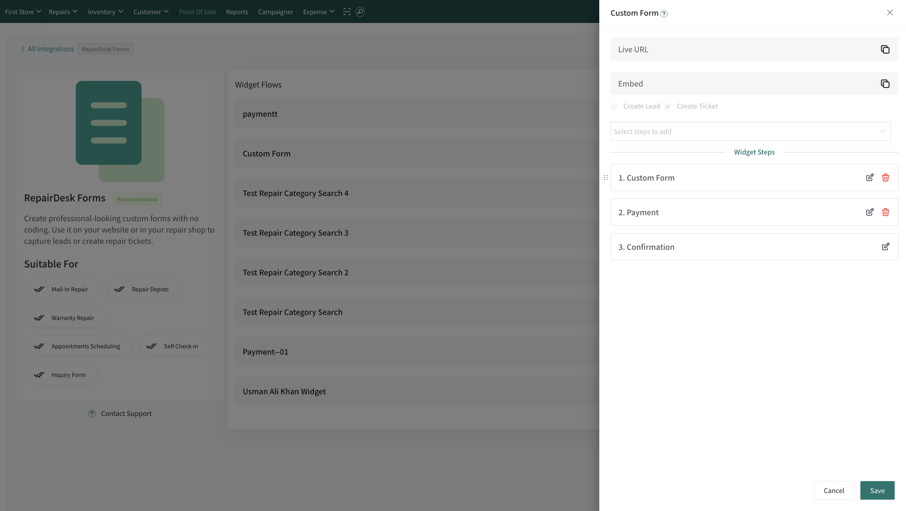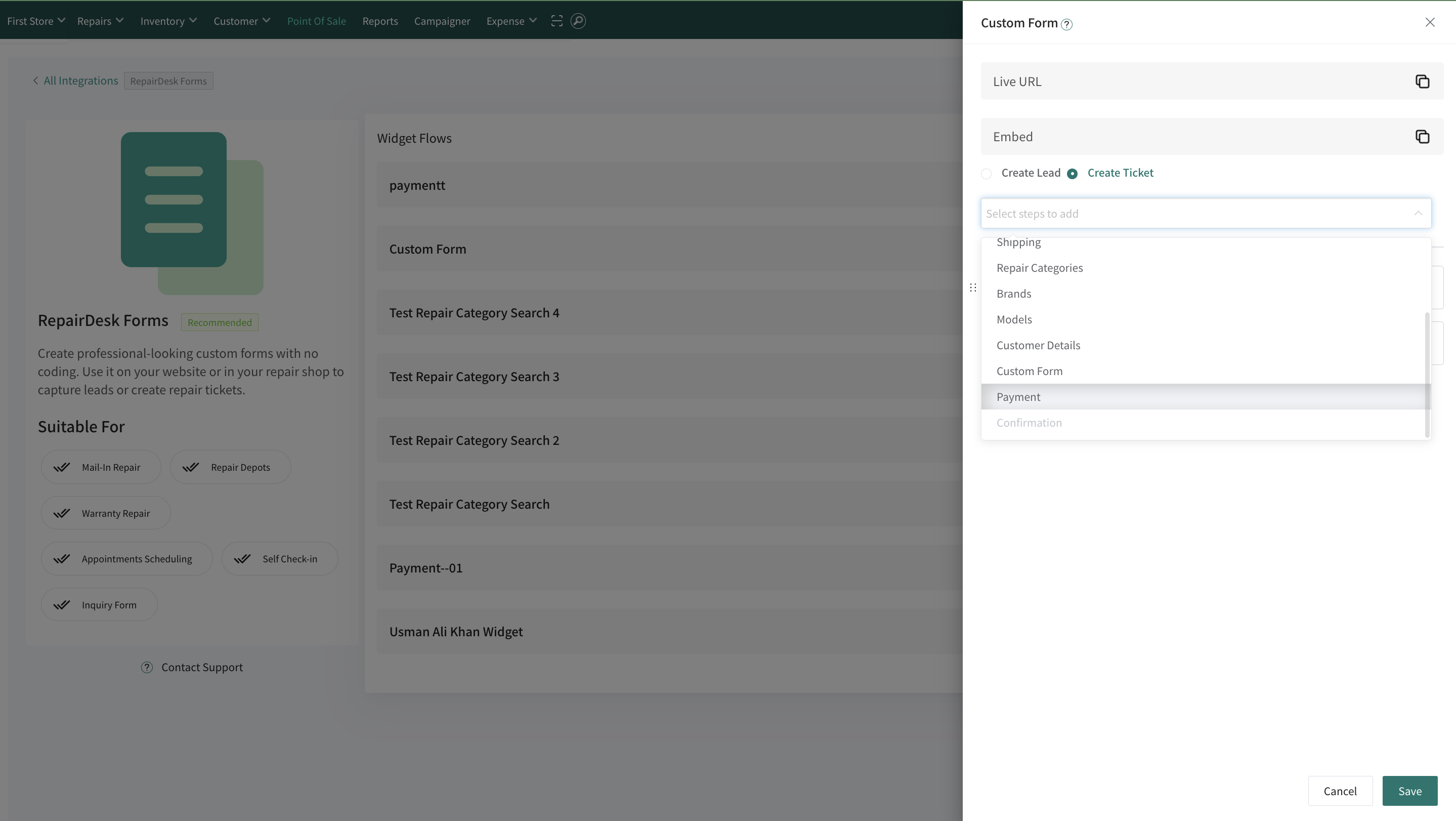 Access RepairDesk Forms Integration: First, navigate to the RepairDesk forms integration section within your account. This area allows you to manage and customize your forms.