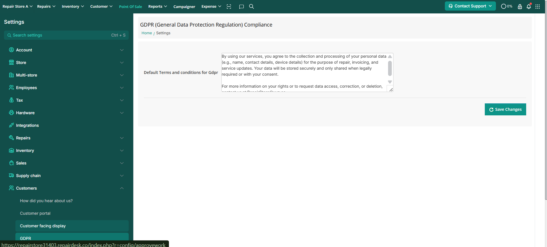 A pop-up will ask if you want to replicate the settings across multiple stores. If needed, select the store(s) and click Save Changes again.