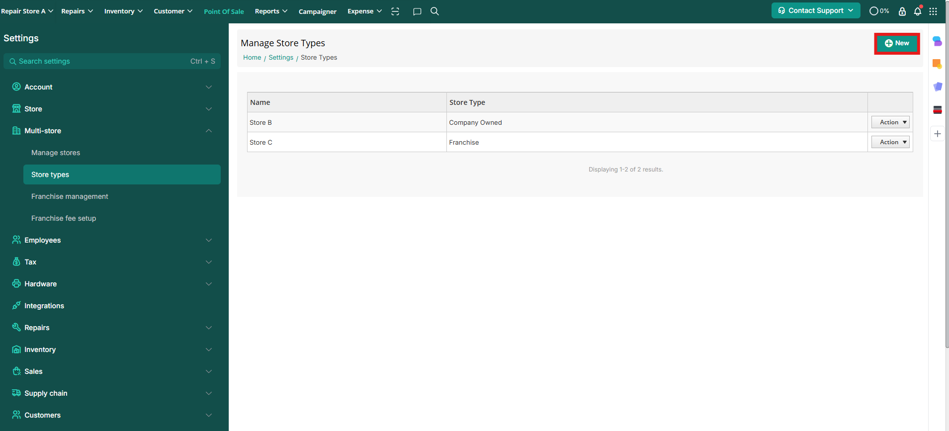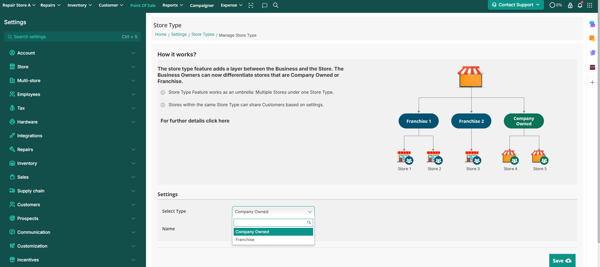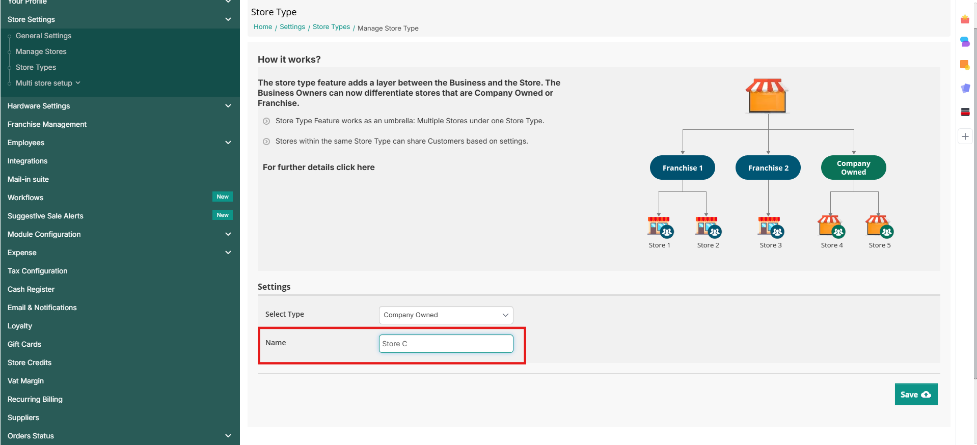 The store type feature adds a layer between the Business and the Store. The Business Owners can now differentiate stores that are Company Owned or Franchise.