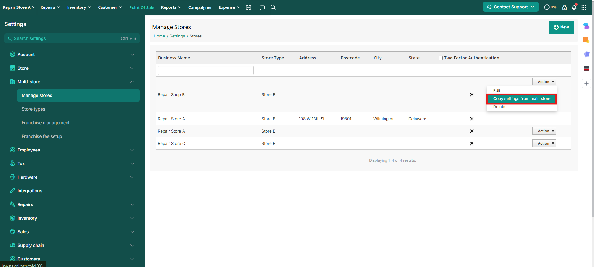 · The customer created in STORE 1 will not be available in STORE 3, 4 & 5.