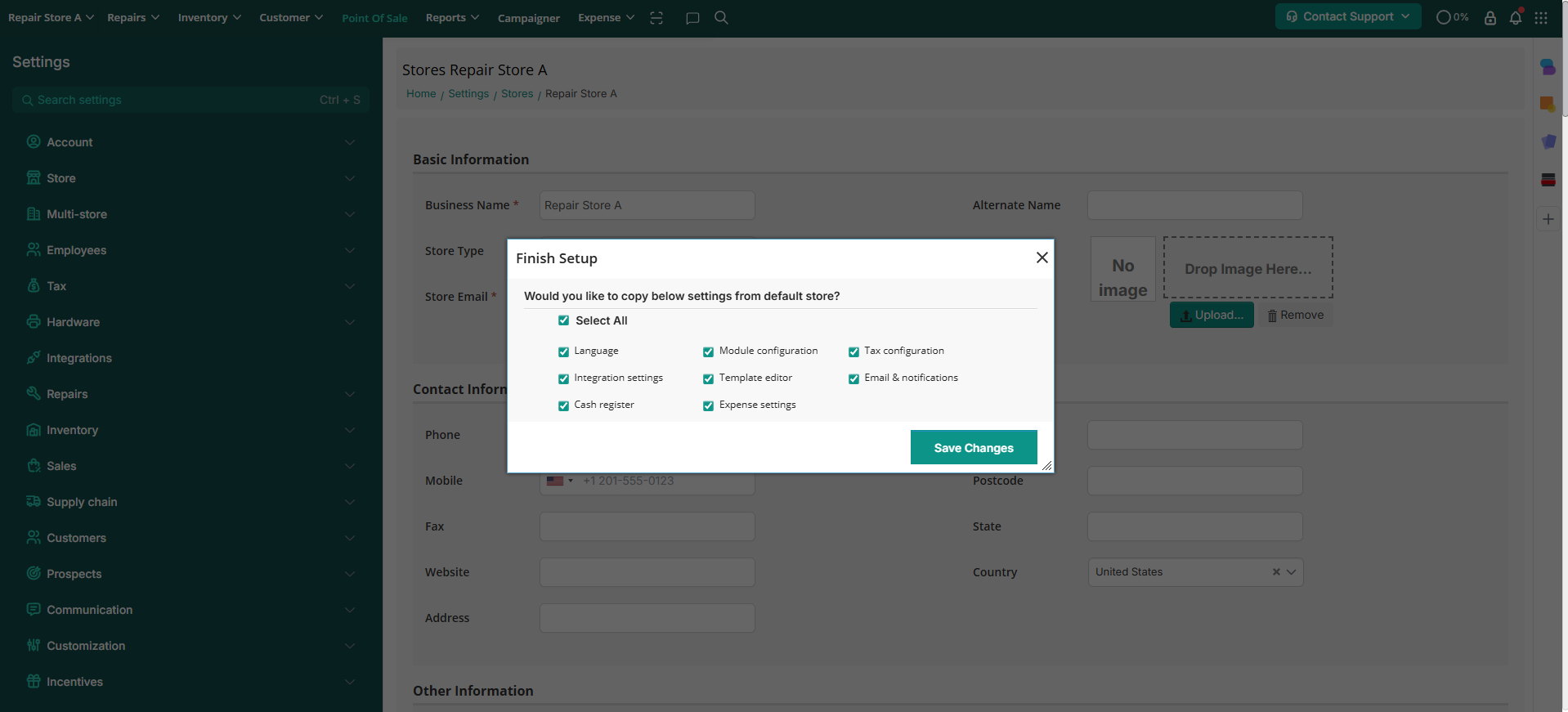 2. Select Store Type (dropdown that lists all the Store Types we created) and all other information for making new store.